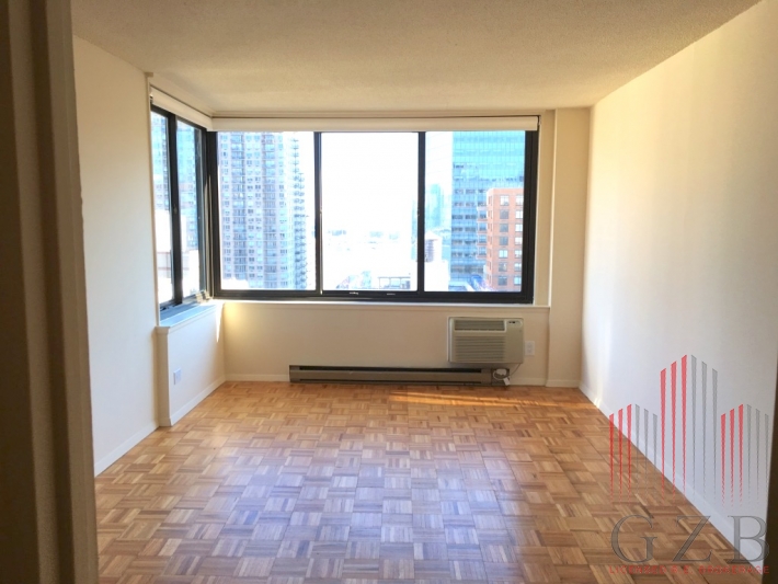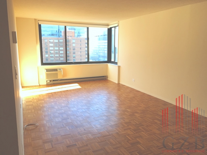 Spacious 1 bedroom, 1 bath apartment with beautiful views facing uptown, galley kitchen (tons of cabinet space) within luxurious Doorman building inclusive of free access to on-site fully-equipped gym and pool. The living room can be easily converted into the second bedroom having enough space for a king size bed and furniture. 24 hours doorman, access to gym, rooftop and sundeck next to the outdoor pool.