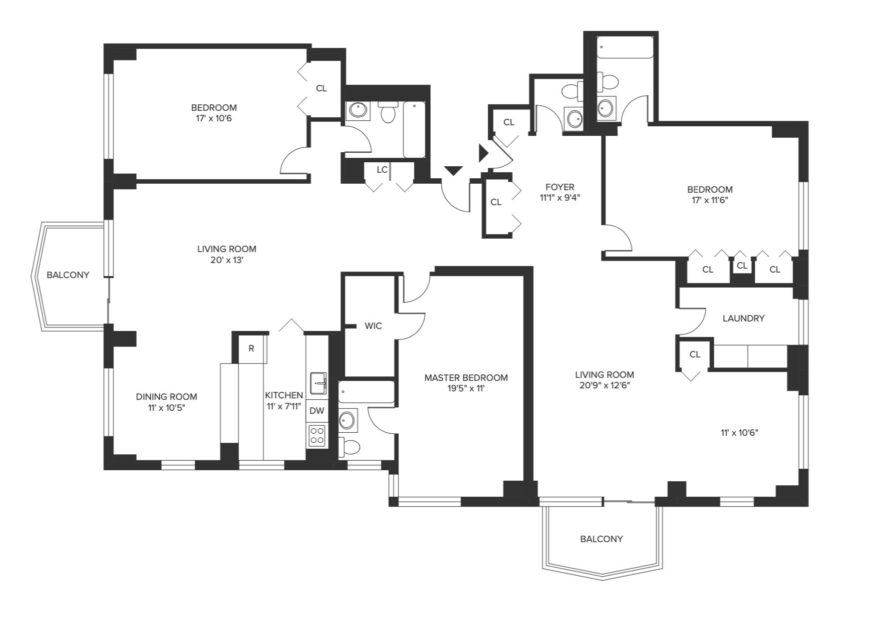 Rare Flex 4 BDR combo apartment with 4th BDR possible.