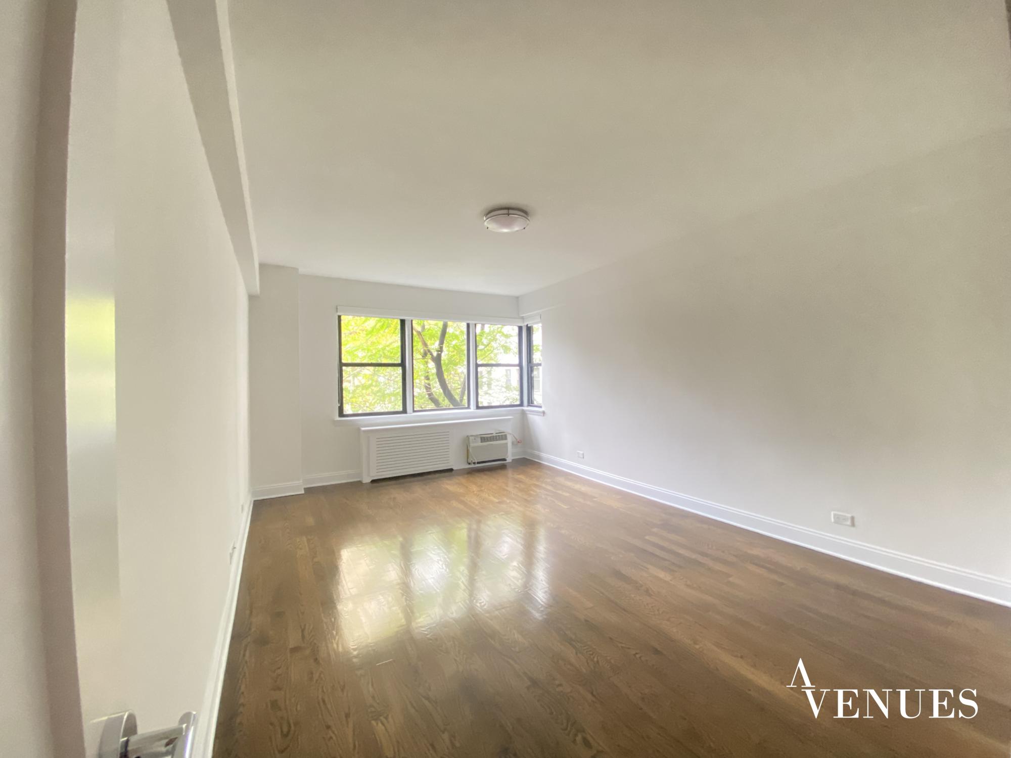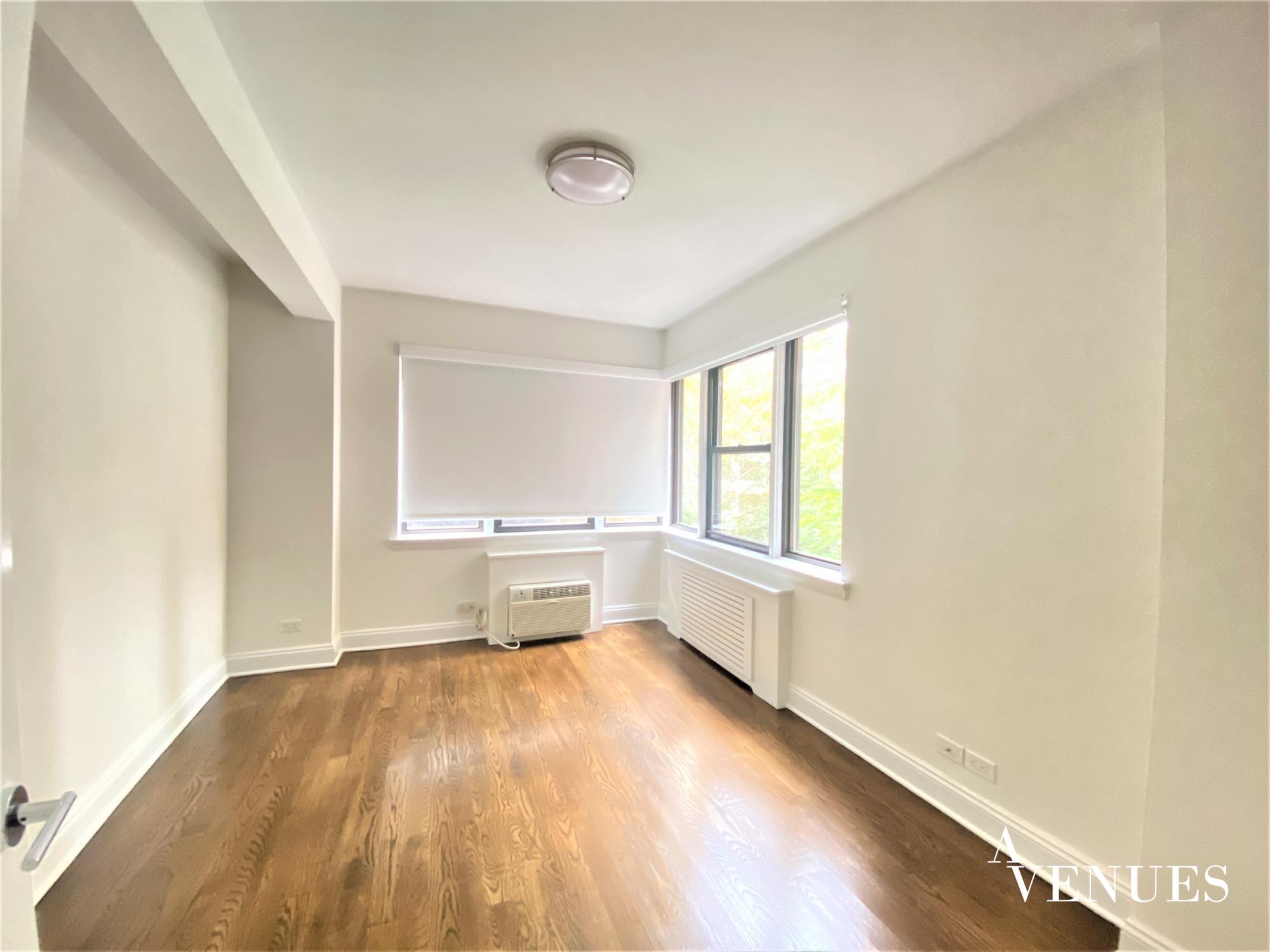 Prestigious building with elevator, full-time doorman, and laundry in building.