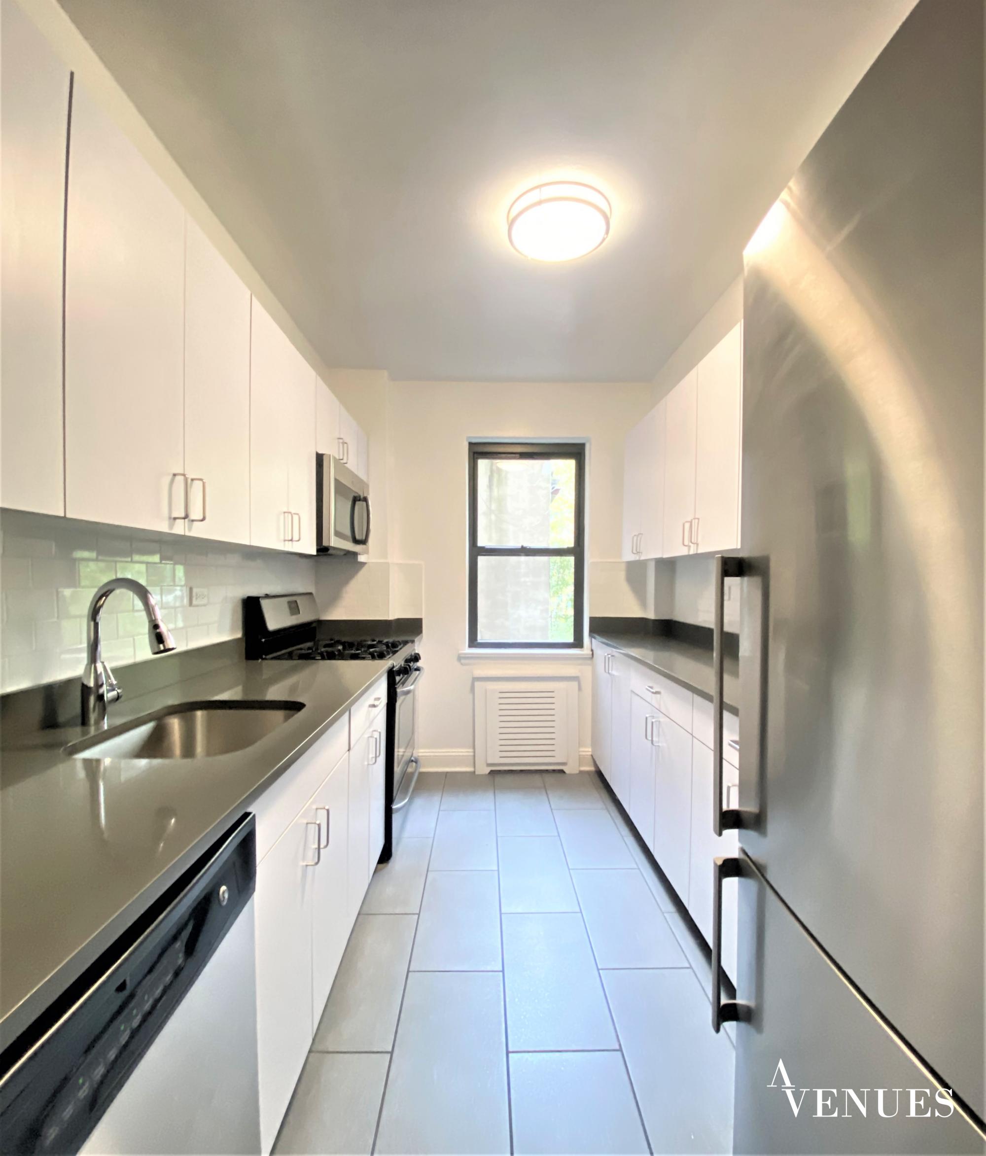 Newly renovated 3 bedroom apartment with two bathrooms and huge living room, and new stainless steel appliances kitchen with dishwasher.
