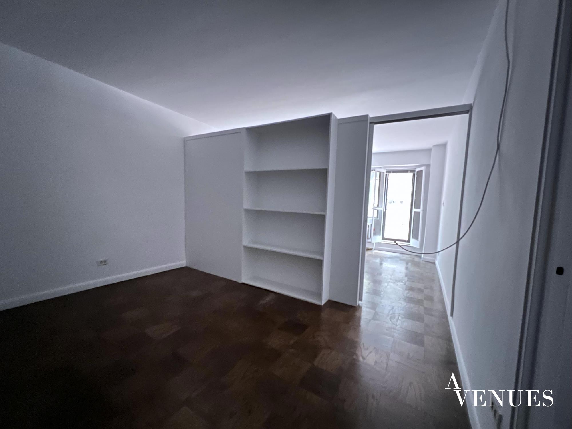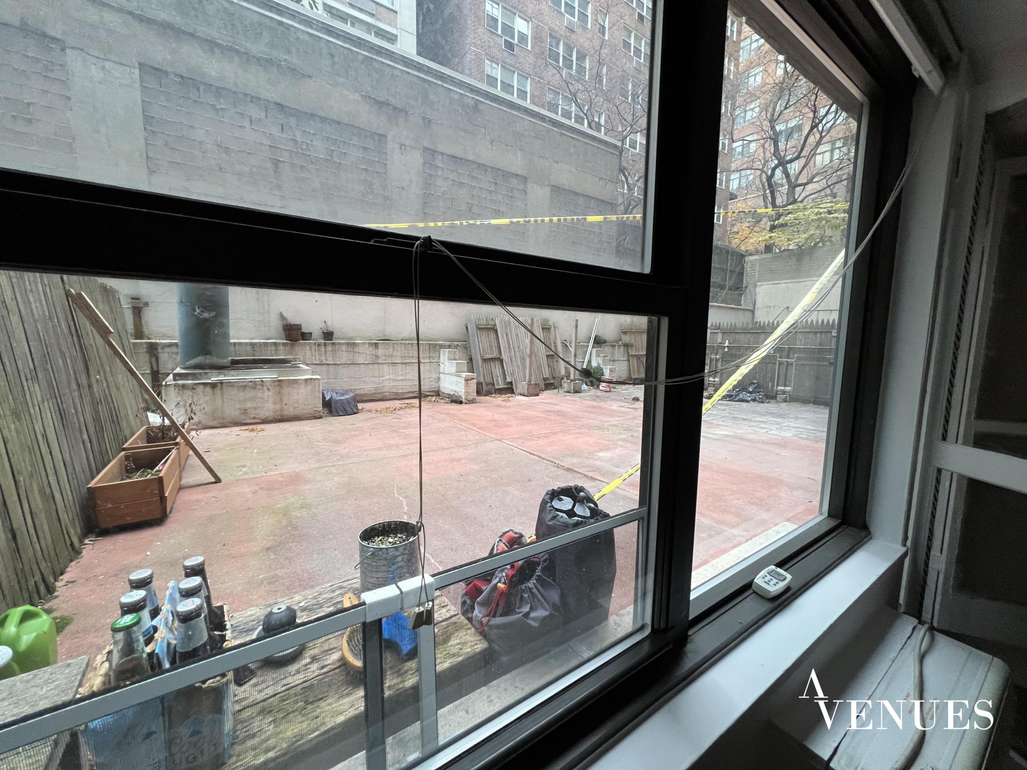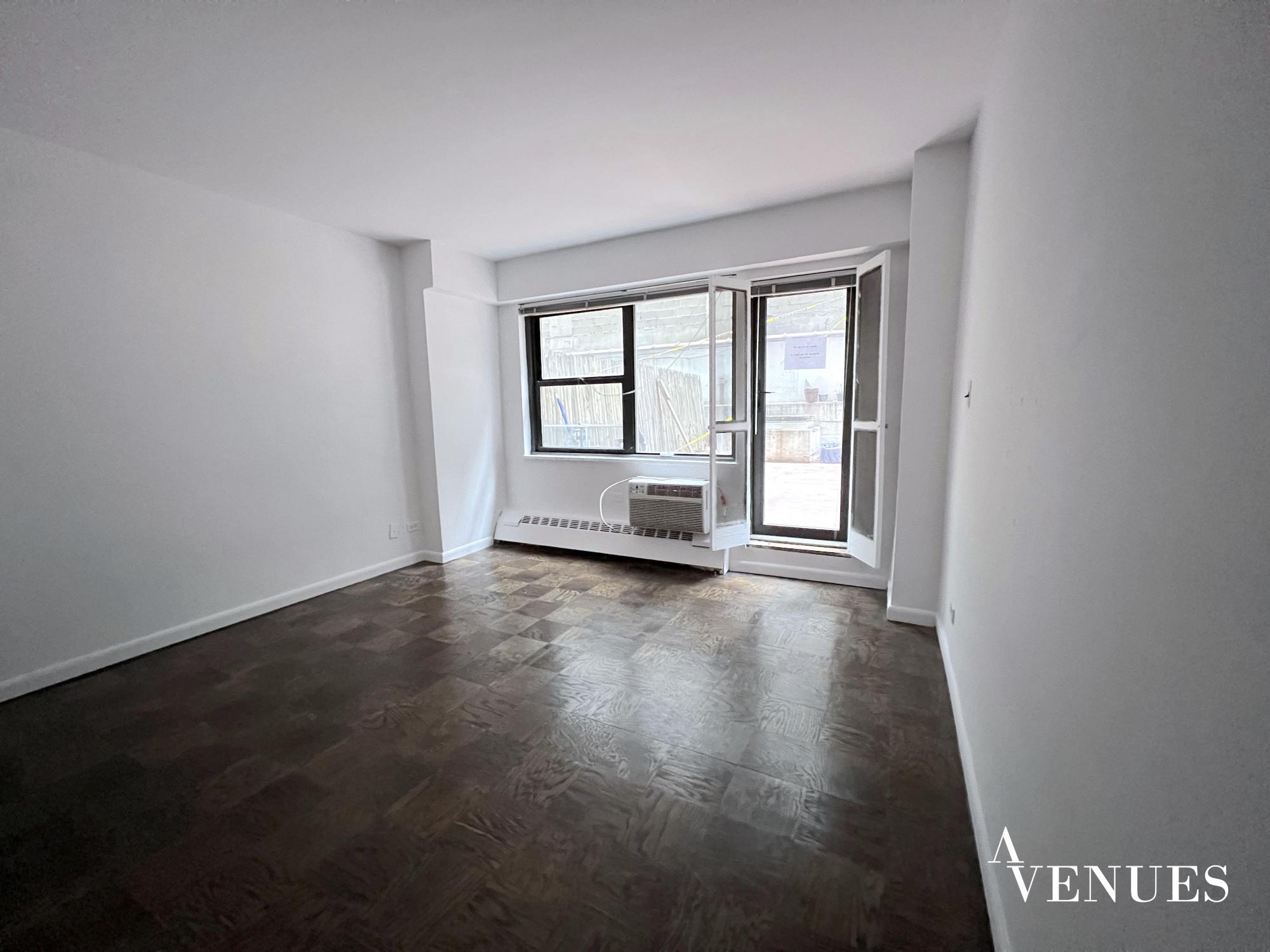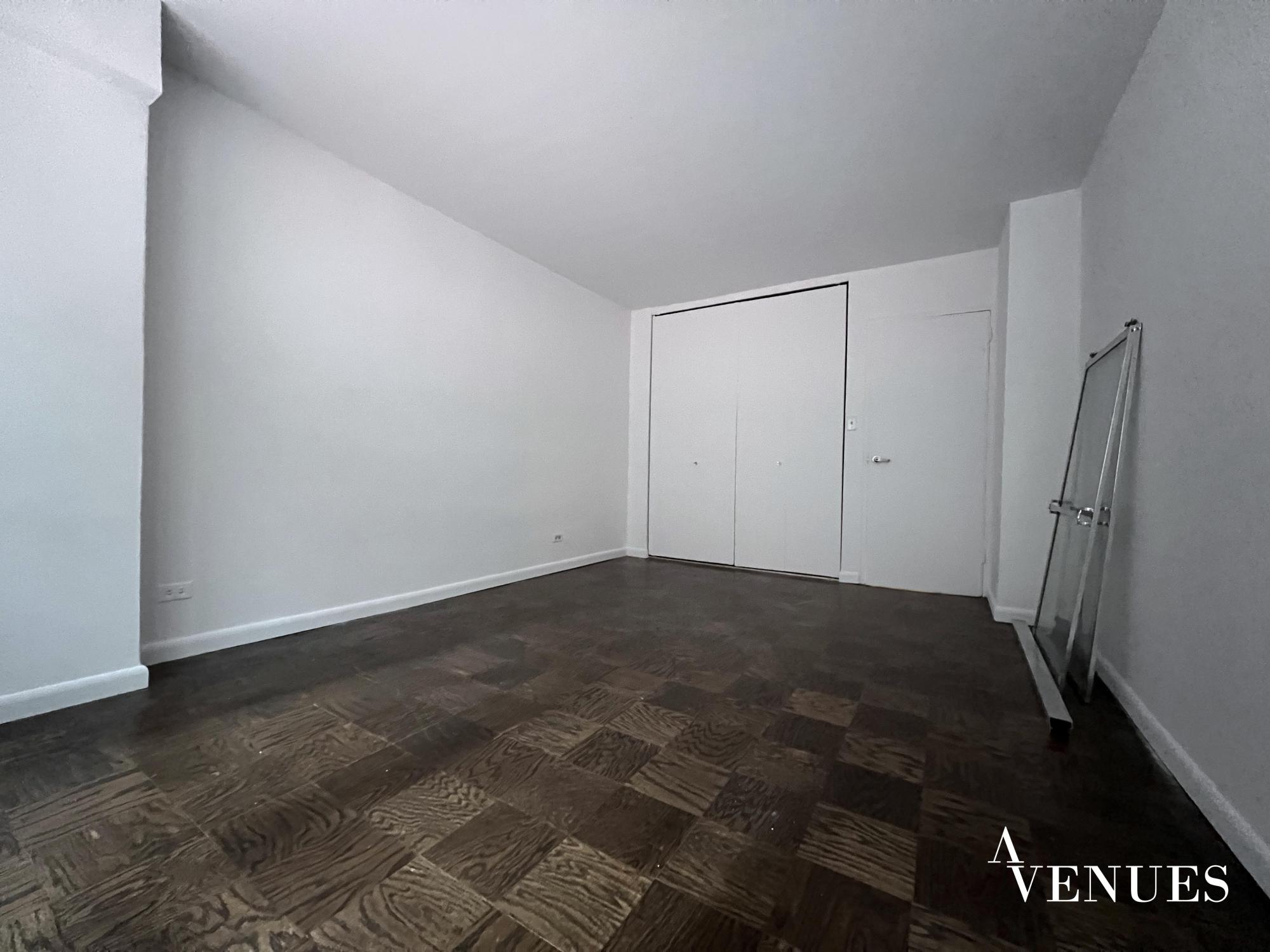 Kitchen – white formica cabinets, black granite countertops, stainless steel appliances.