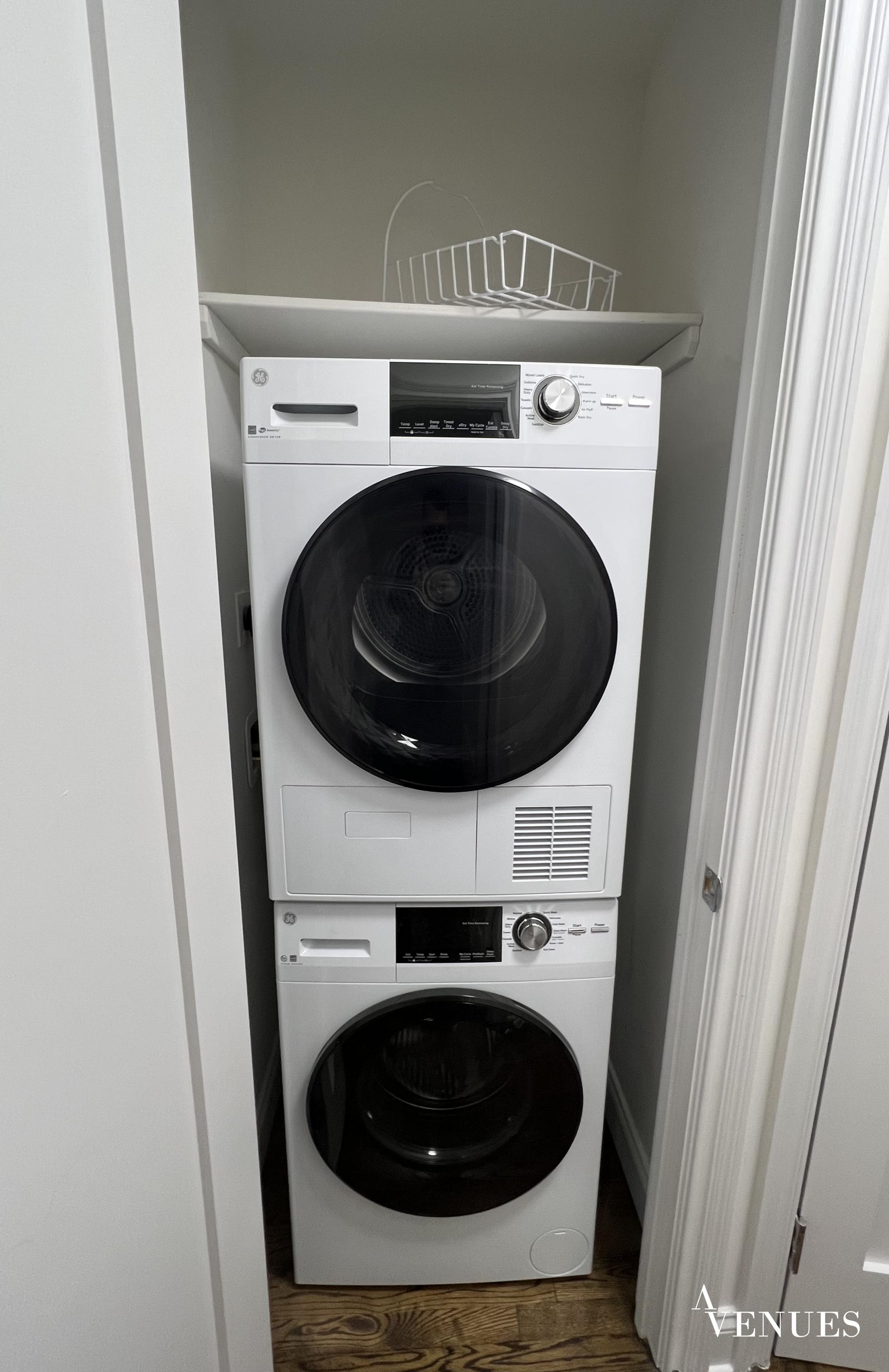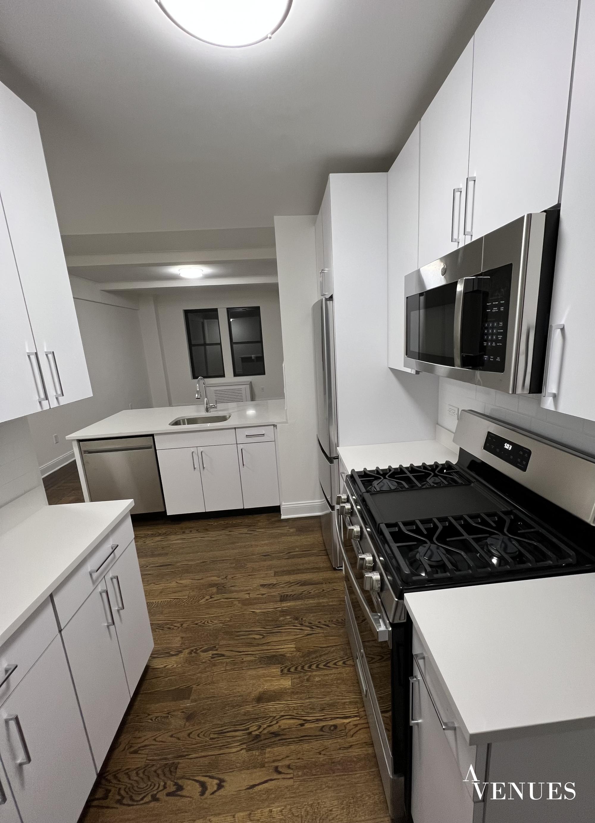 Kingsize bedroom, generous closet space. Kitchen features white island with stainless steel appliances and dish washer perfect breakfast bar flows to open living room. Braun hardwood flooring/ rooms with large windows/ a lot of daylight. Bathroom impresses with elegant tiles walls and floor/ spacious glass shower.