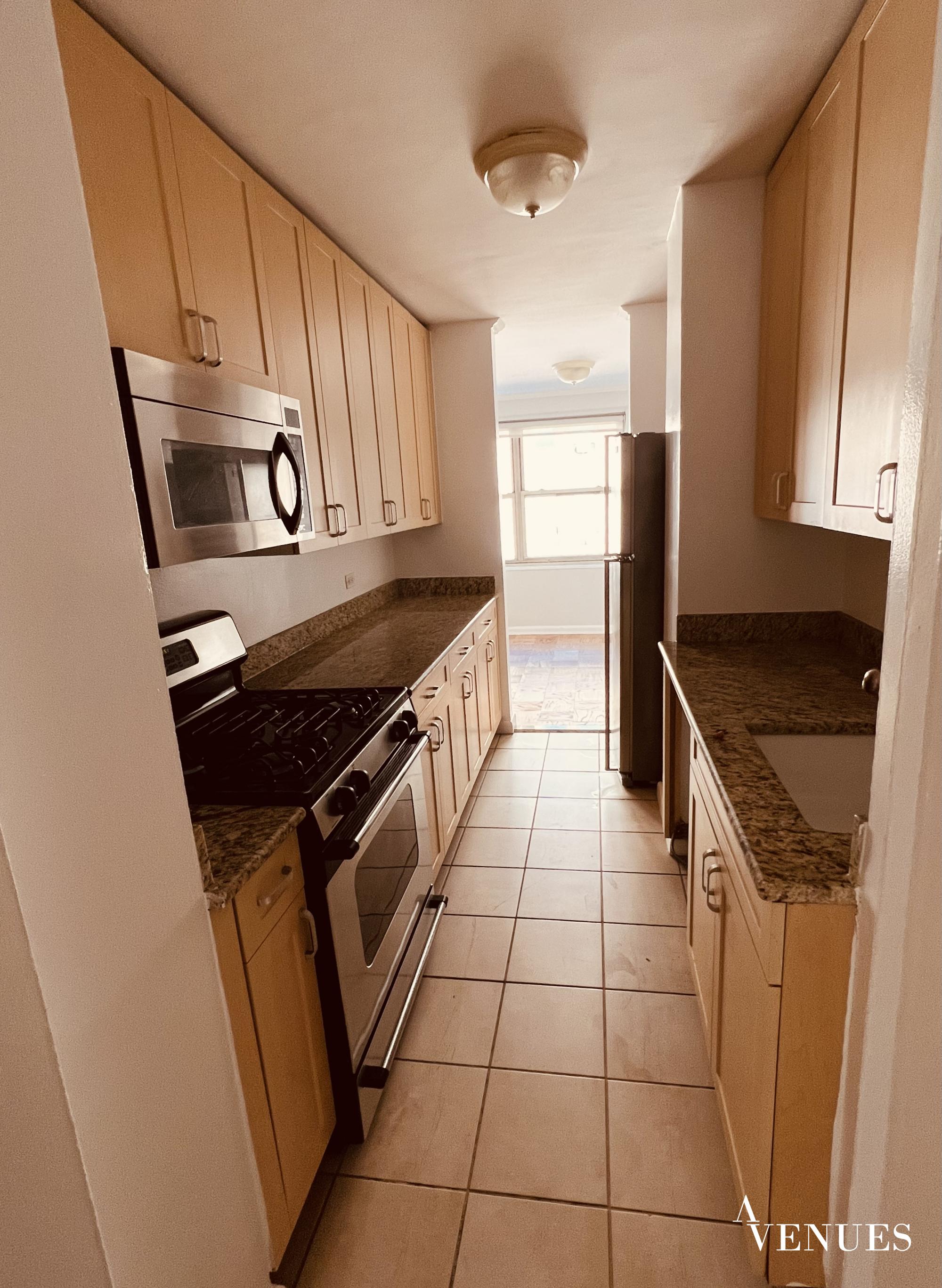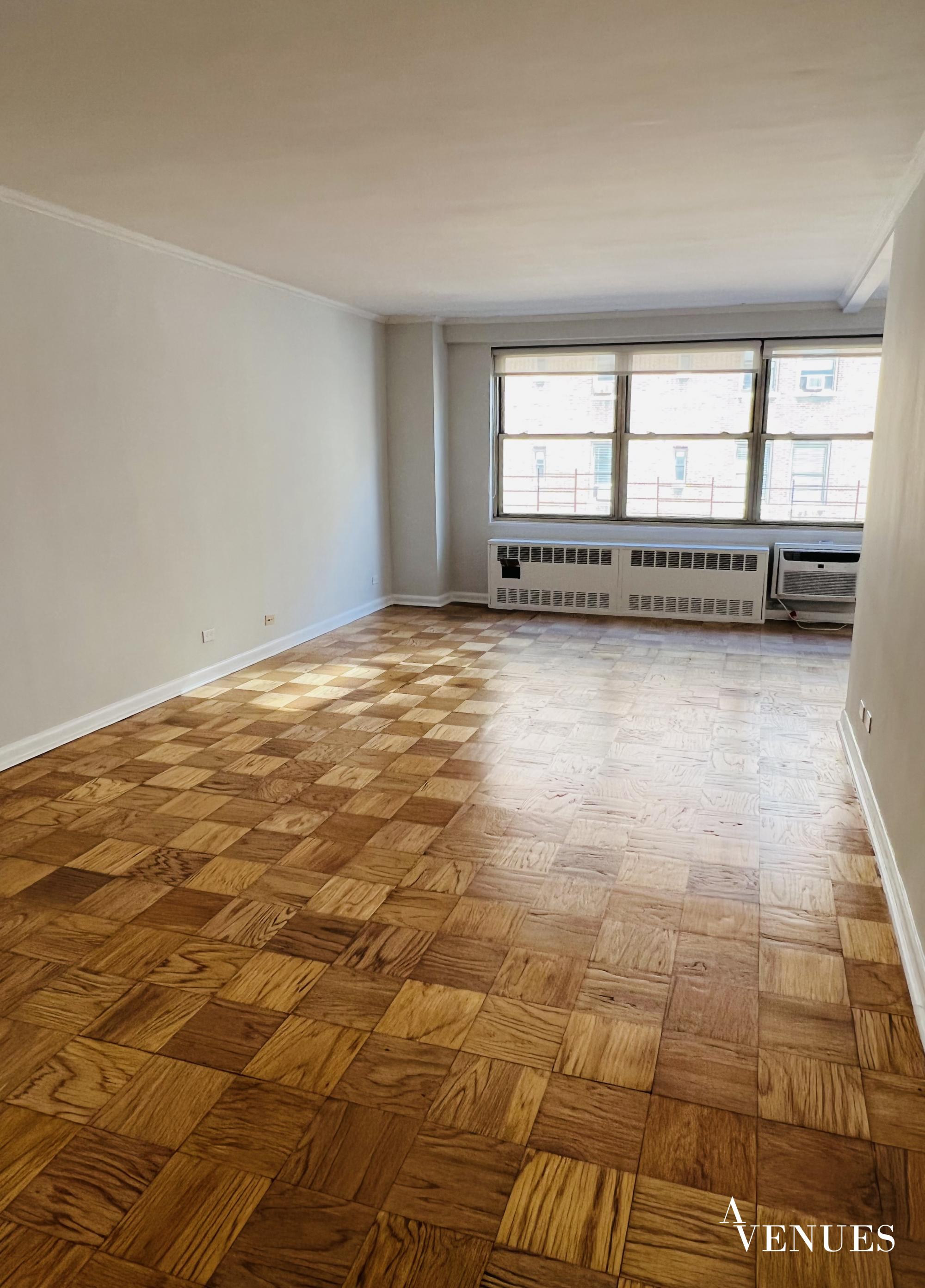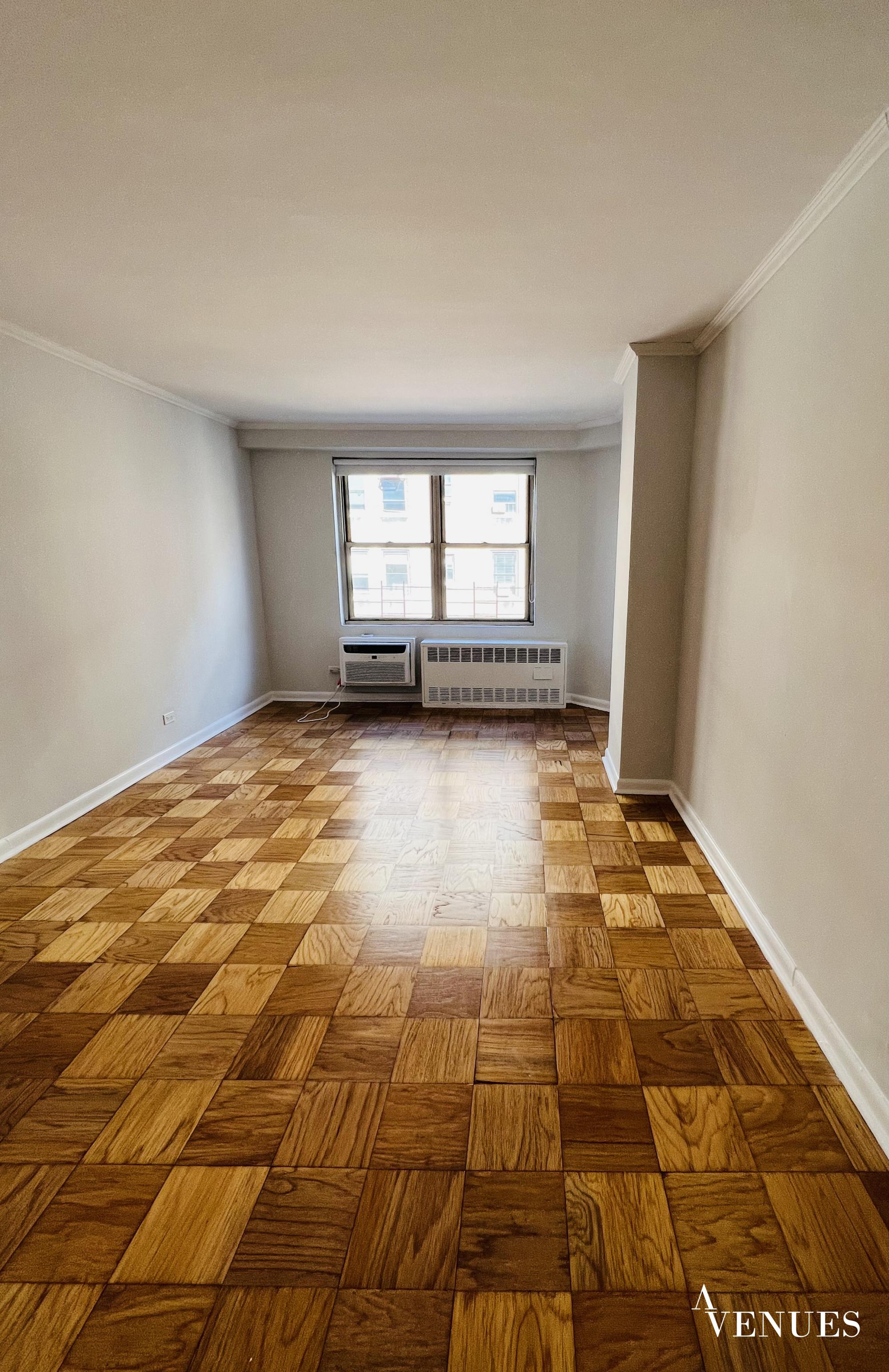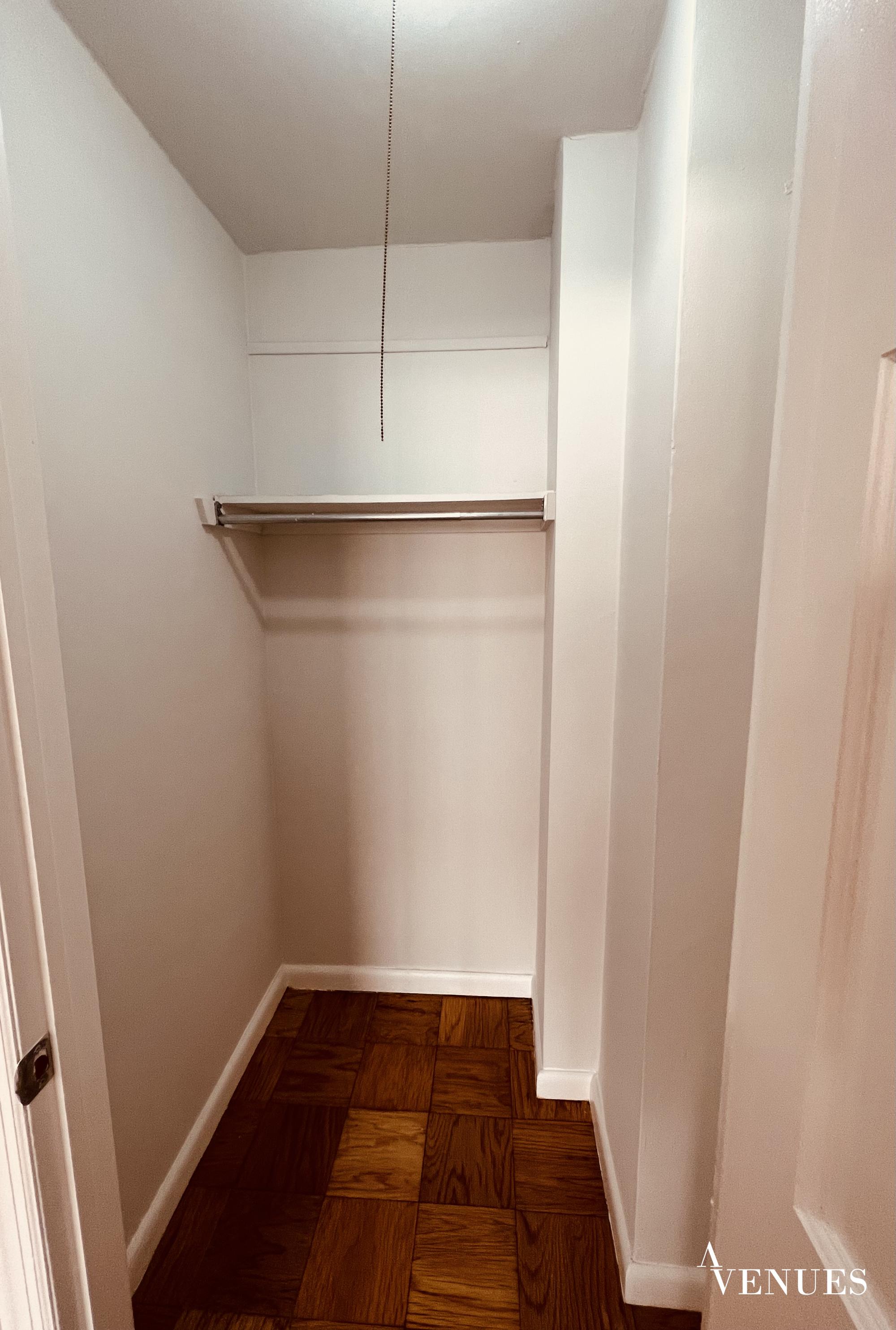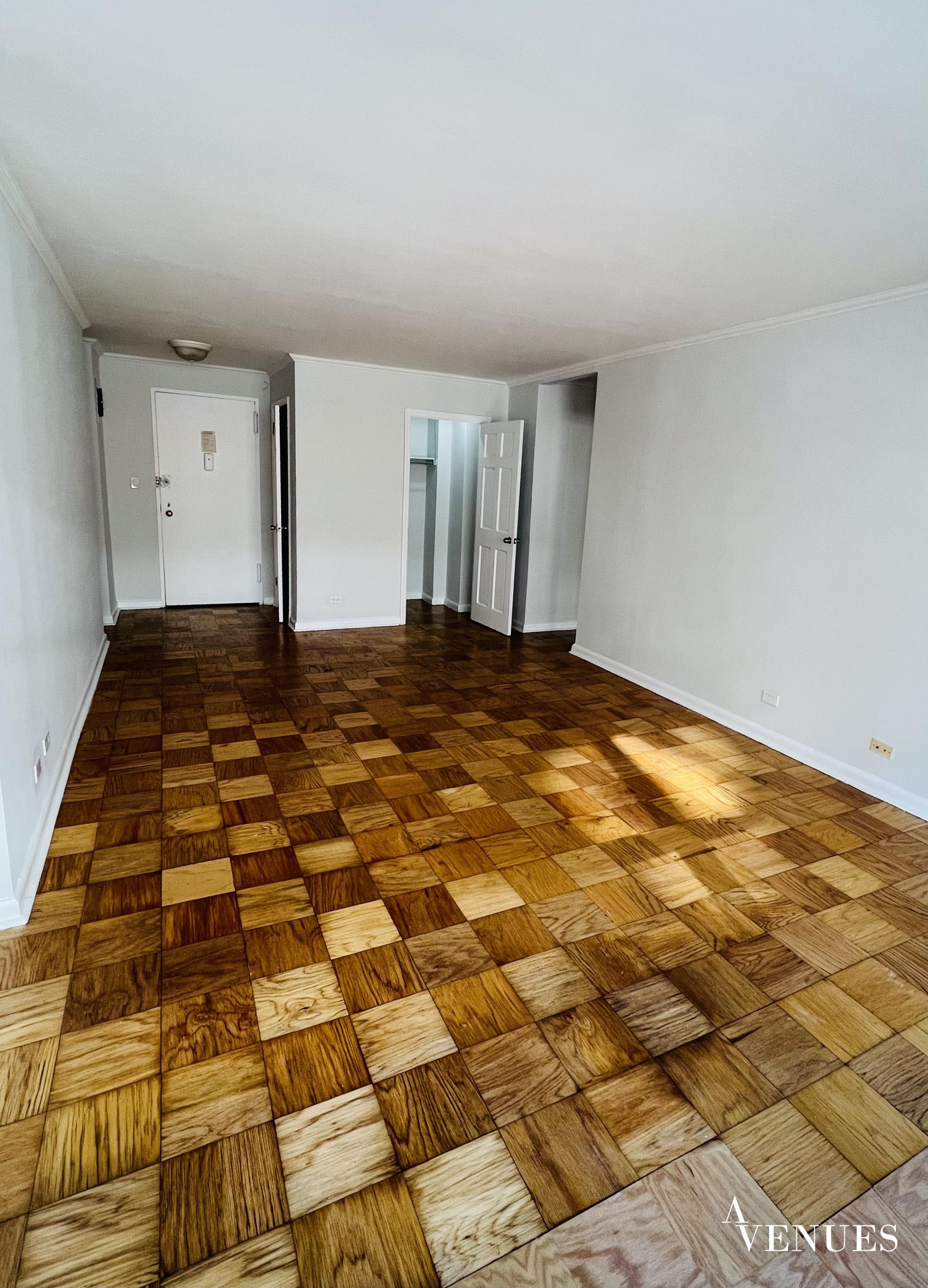 This is a renovated one bedroom apartment with large windows and tons of daylight. Open space of living room its flows to a dining alcove. Fully-equipped kitchen/stainless steel appliances/Kitchens storage. Perfect layout with hard wood floor gives specific charm to apartment. The bedroom is large to fit kingsize bed/closet space+enormous walk-in closet. Very elegant bathroom with full size bathtub and cabinets.