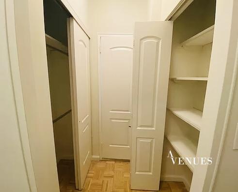 Very functional studio with fully equipped kitchen and plenty closet space. Unit is specious enough for a queen size bed and decent space for living area. Unit has a two large closet to place a lot of things. Pleasant bright Unit with wood flooring.