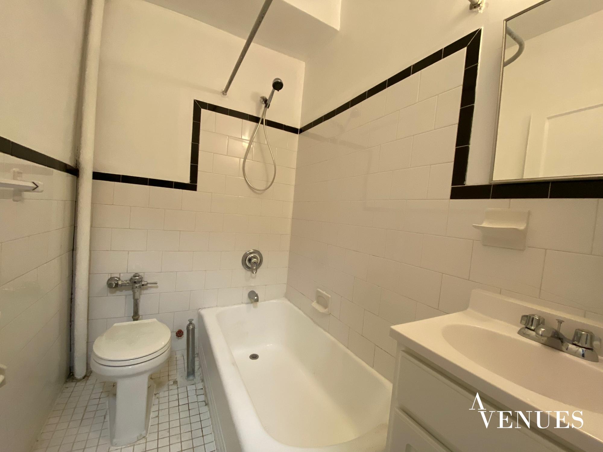 Black and White Subway-Tile Bathroom w/Original Vintage Cast Iron Tub
