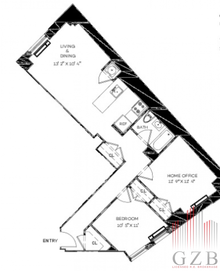 Spacious and very bright 1BR with home office and updated kitchen with stainless steel appliances and renovated bathroom.