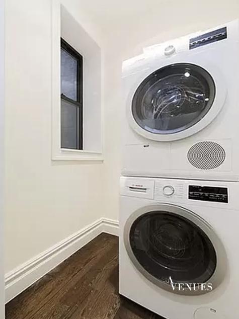 This apartment features an IN – UNIT premium Bosch stackable washer & dryer!