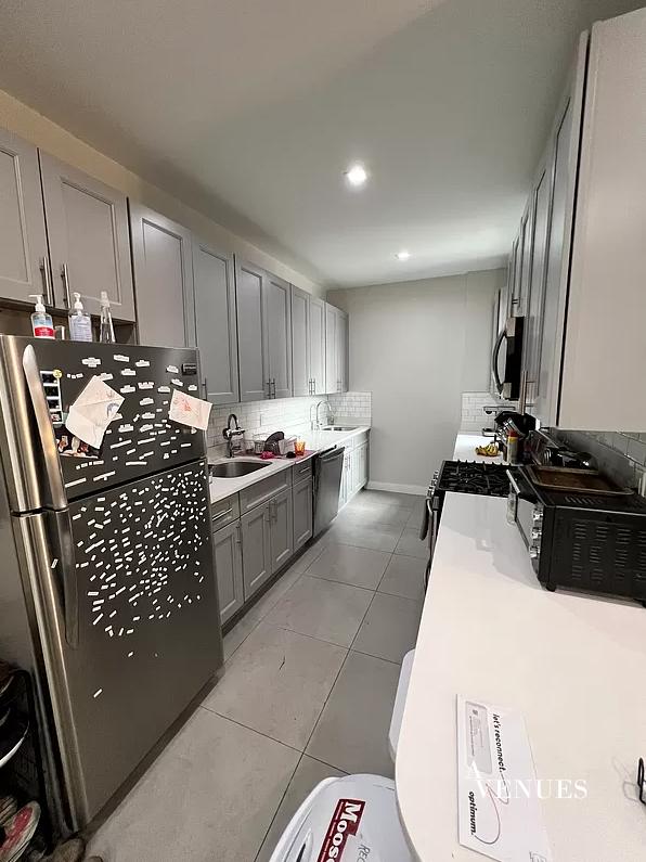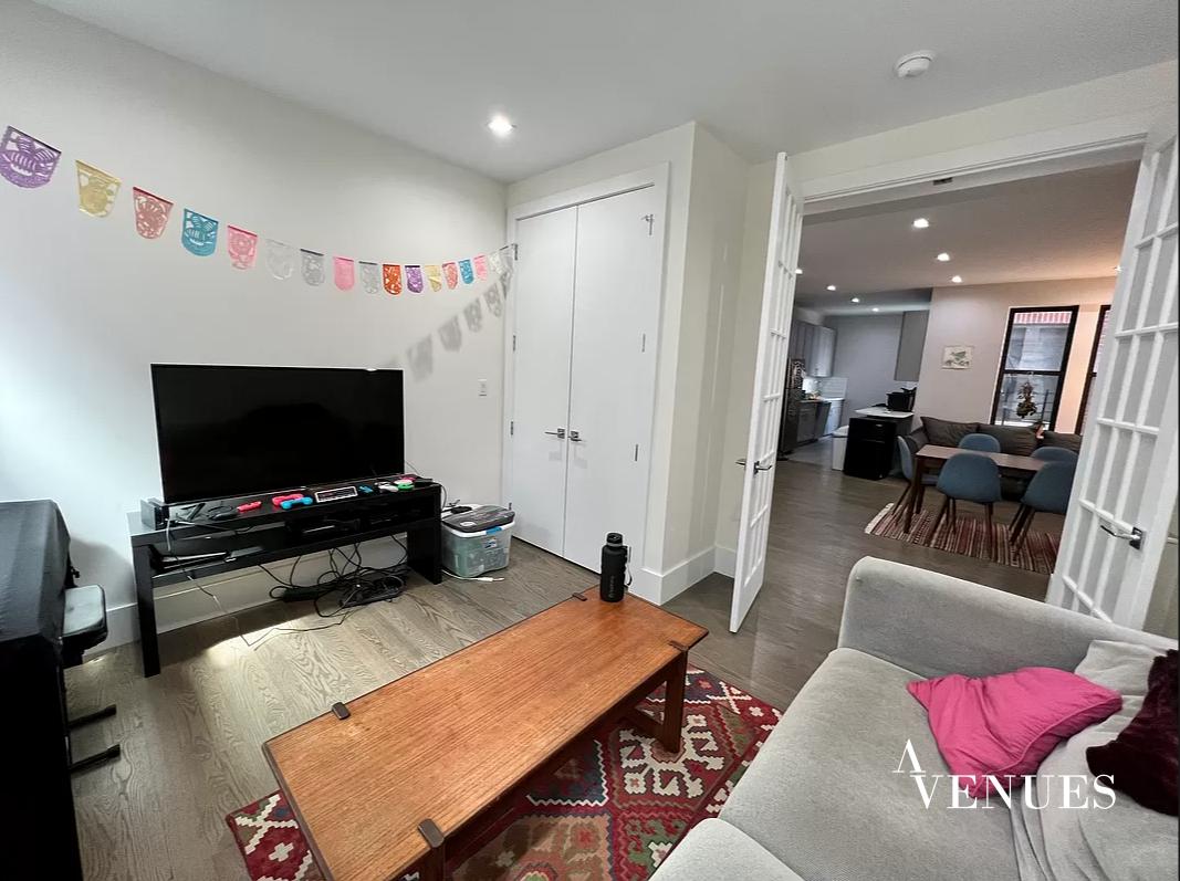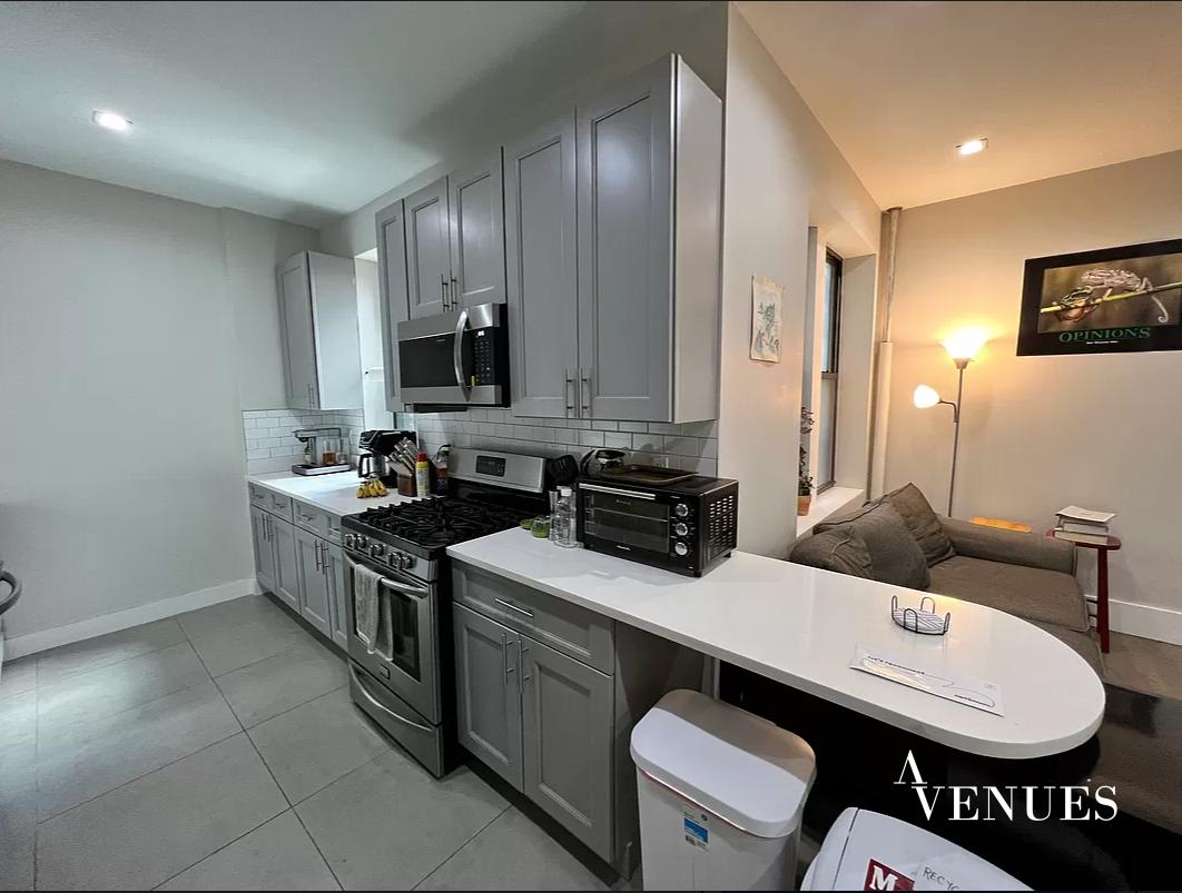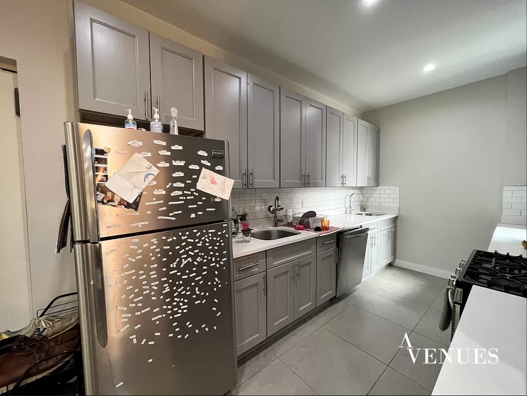 Brand new gut renovated, MASSIVE, quiet, very bright and sunny, drop dead gorgeous 5 bedroom, 2 full Bathroom apartment with a open chef kitchen which includes stainless steel appliances including refrigerator, range, dishwasher & microwave, white granite counter tops, tile back splash & ceramic tile flooring, custom made gray cabinets with self closing doors, two sinks & open bar.