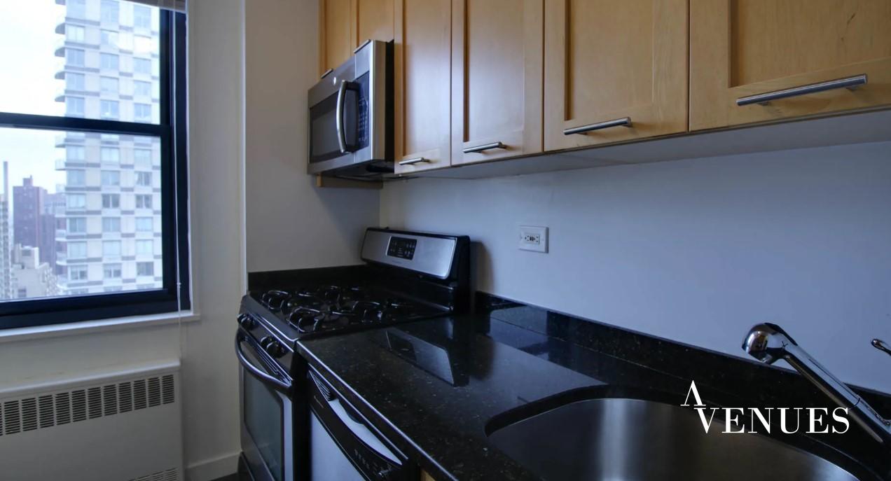 Balcony with beautiful city view and washer and dryer Renovated open kitchen with stainless steel appliances and dishwasher
