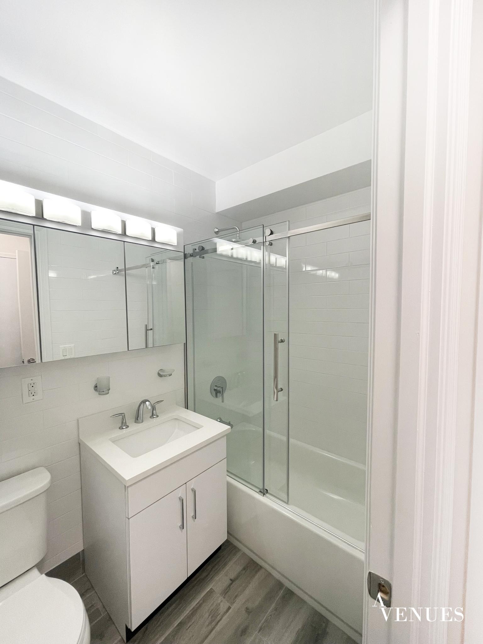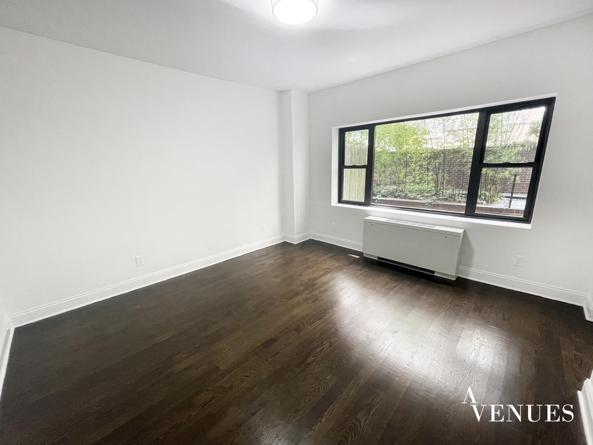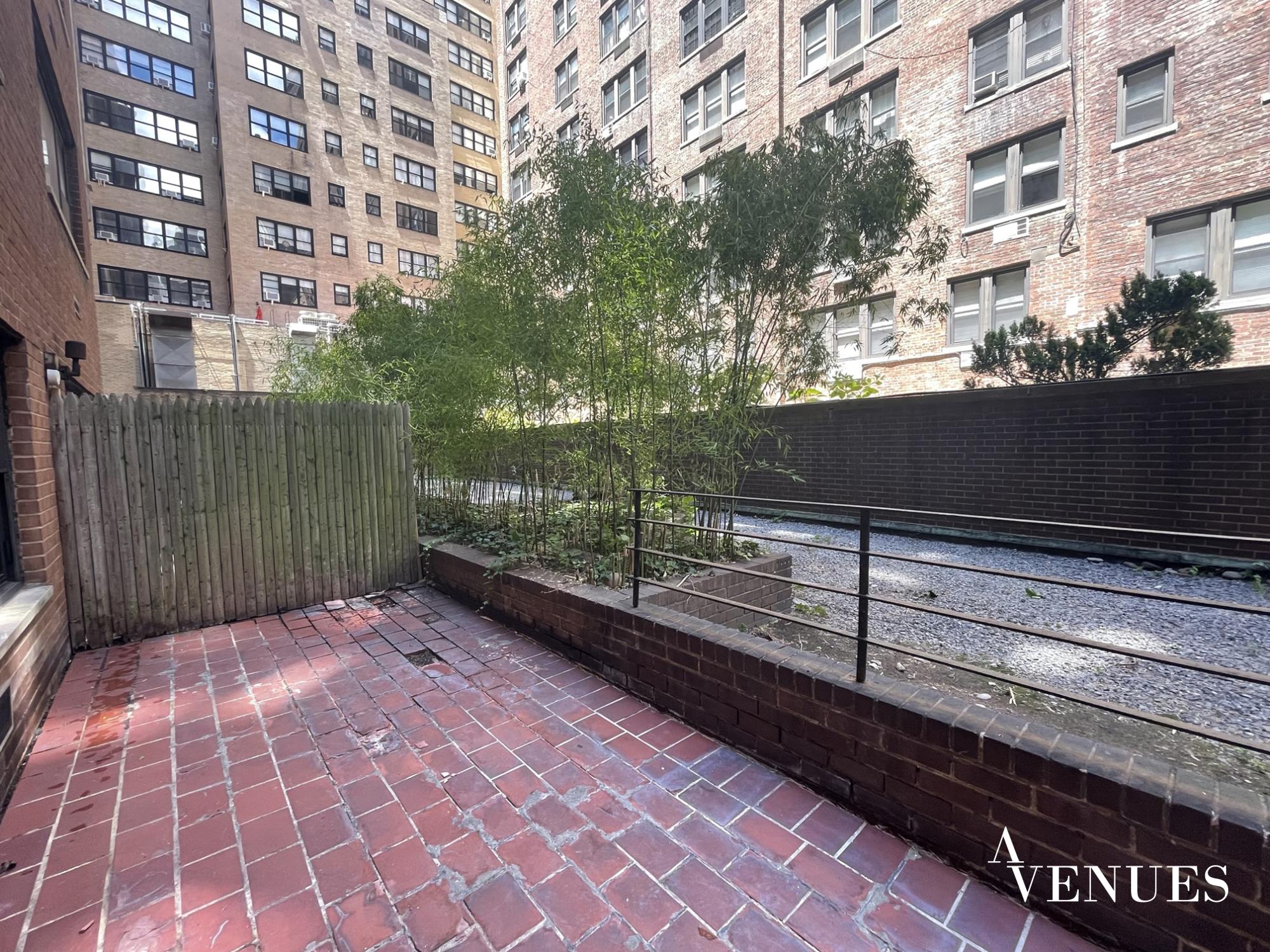 Sunny studio apartment with an enormous private patio, large windows, hardwood floors, stainless steel kitchen appliances, and spacious closets. There is a full-time doorman and live-in super. A laundry room is on-site / Parking is available per request.