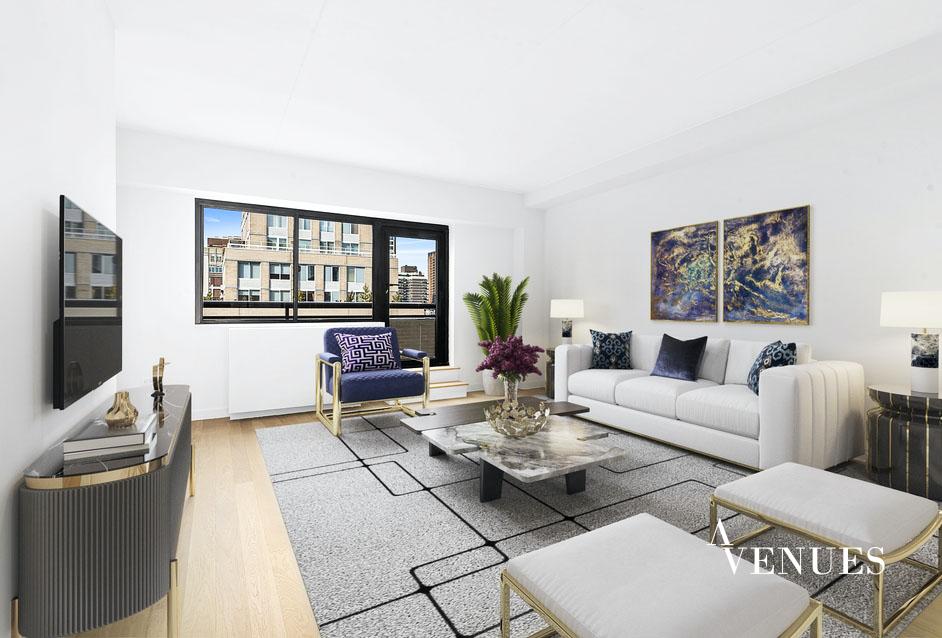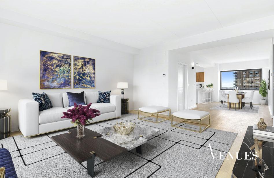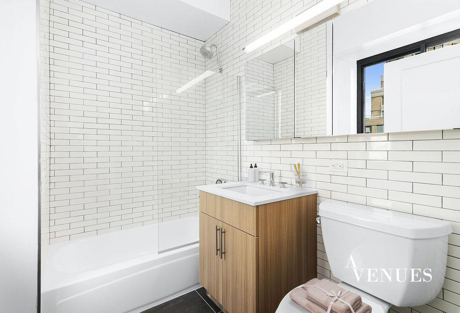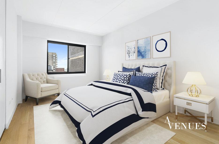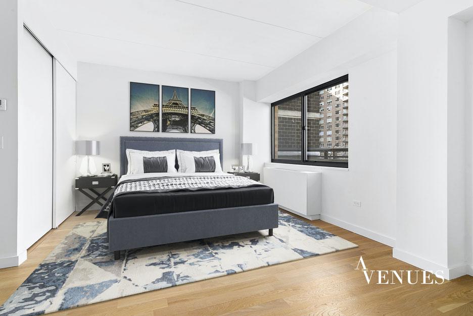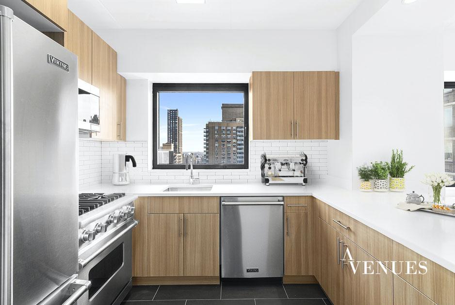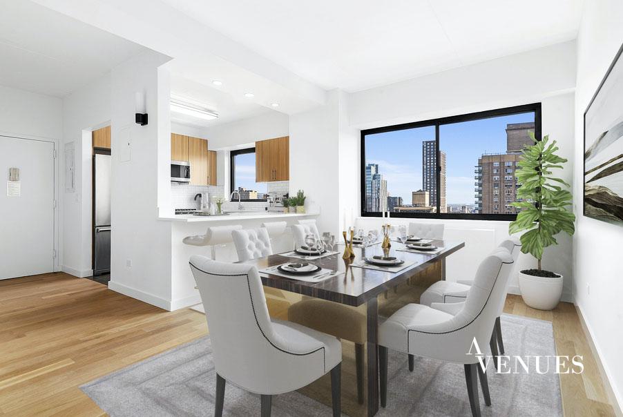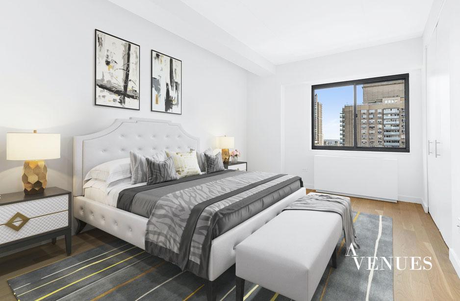 This is a newly-renovated, oversized three-bedroom apartment! A spacious living area for comfortable living and dining rooms anchors the apartment with the generous bedroom accessed from a hall off the living room. The largest bedroom has a huge walk-in closet and en-suite bathroom. The fully renovated kitchen includes modern, gloss paneled flat-front cabinetry, stainless-steel appliances, and a sleek gray quartz countertop. Located well above the neighboring buildings on the twenty-first floor of the apartment. The terrace has unencumbered light and serene city views.