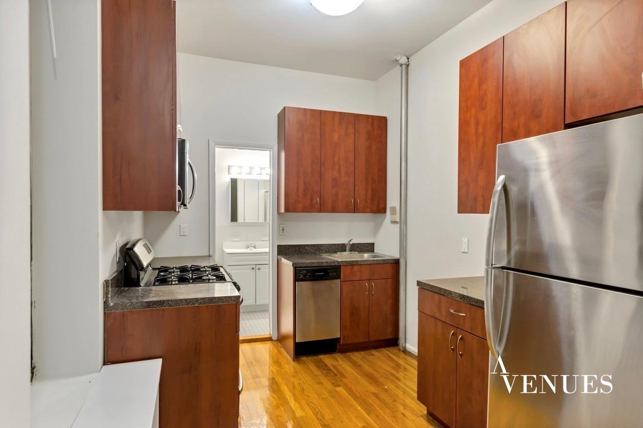 Gorgeous 1 bedroom apartment in Hell’s Kitchen! Gourmet kitchen with custom cabinetry, granite countertops, and stainless steel appliances, including dishwasher. Queen size bedroom. LED high hat lighting, hardwood floors, and 9 1/2 feet tall ceiling throughout. Heat and hot water included.