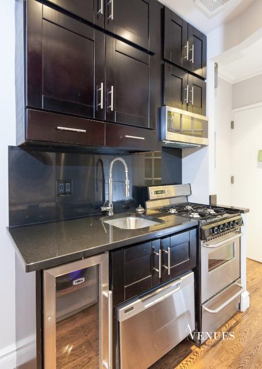 This is a 2 bedroom apartment with balcony in a great Lower East Side location. The unit has a washer & dryer, a marble bathroom, and a lovely granite kitchen, with stainless steel appliances, including a dishwasher and wine cooler. Exposed brick and hardwood floors. Perfect home for entertaining.