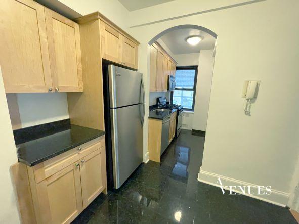 Apartment building features doorman, package room. The apartment has great natural light, grand lowered living room, great natural light, spacious bedrooms, updated kitchen with stainless steel appliances, glimmering bathroom, great closet space, high ceilings and hardwood floors.
